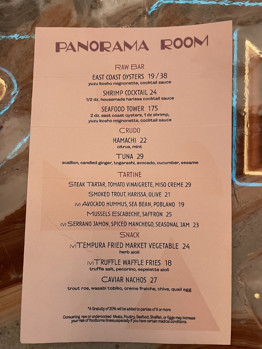 Introducing the menu at Panorama Room, located on the 18th floor of the Graduate Hotel in New York City, is an experience not to be missed. This stunning rooftop venue boasts breathtaking panoramic views of the city's skyline, making it an ideal spot for both sunset gazing and vibrant nightlife.